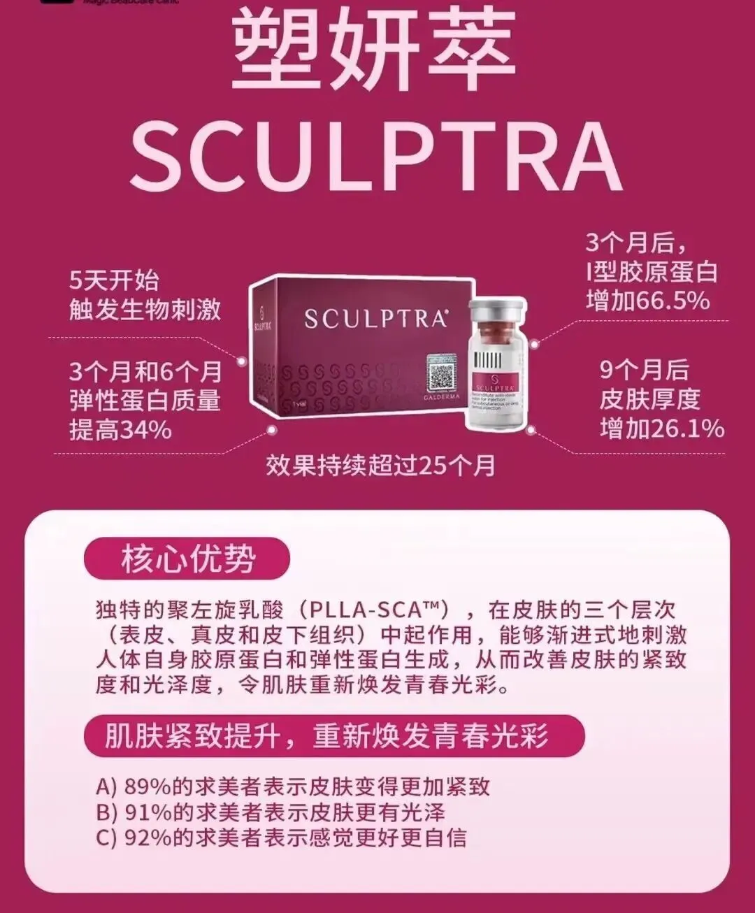 9、sculptra塑妍萃的一整个疗程包含最多三至四次的操作,而每次操作相隔四至六个星期,因为Sculptra塑然雅跟人体相融,所以操作前不需要先做敏感测试。