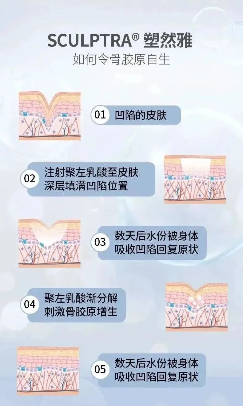 4、Sculptra塑妍萃注s费位置:骨膜上层,真皮层以及皮下组织层,斜面式针插入皮肤在一个大约30-40度角的皮肤插入,直至达到所需的皮层。注射并在正确的层次对效果的显现和减少作用的发生非常关键。