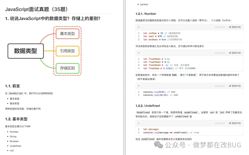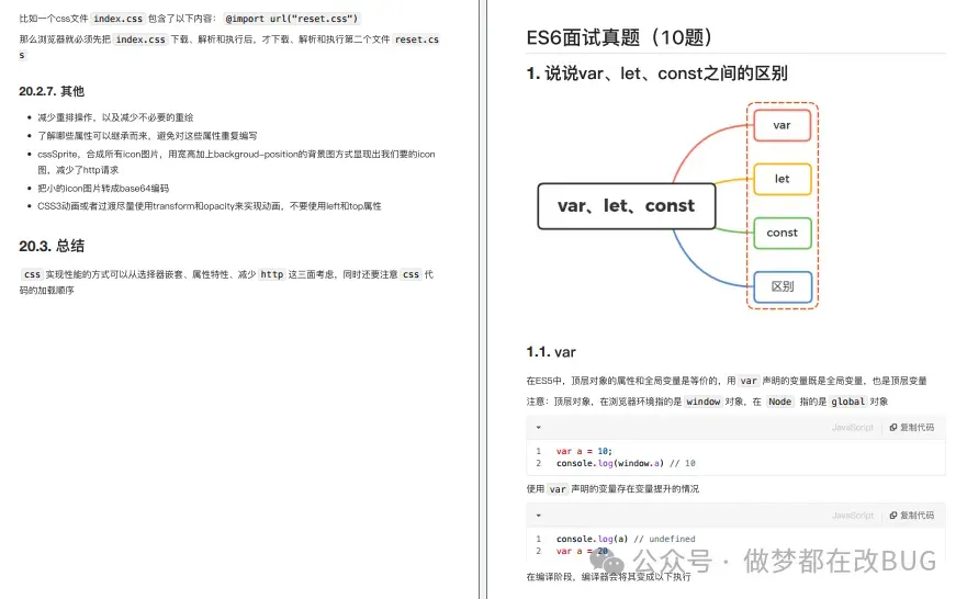 主要内容:JavaScript、Css、ES6、Vue2、Vue3、React、Node.JS、小程序、HTTP、TypeScript、Webpack、Git、Linux、算法与数据结构、设计模式等