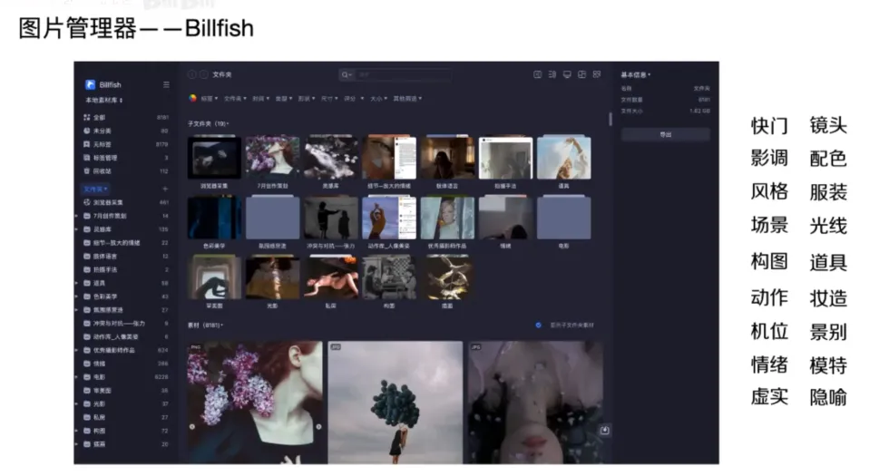风格分类/构图分类/色彩分类/道具使用等...