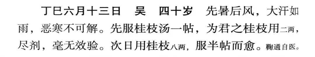 而先生所述症状“大汗如雨,恶寒不可解”,一方面说明贼风数至,感邪深重,另一方面说明他脾虚较显,而“桂枝本为解肌”,《本经》认为桂枝“补中益气”,所以用量较大。