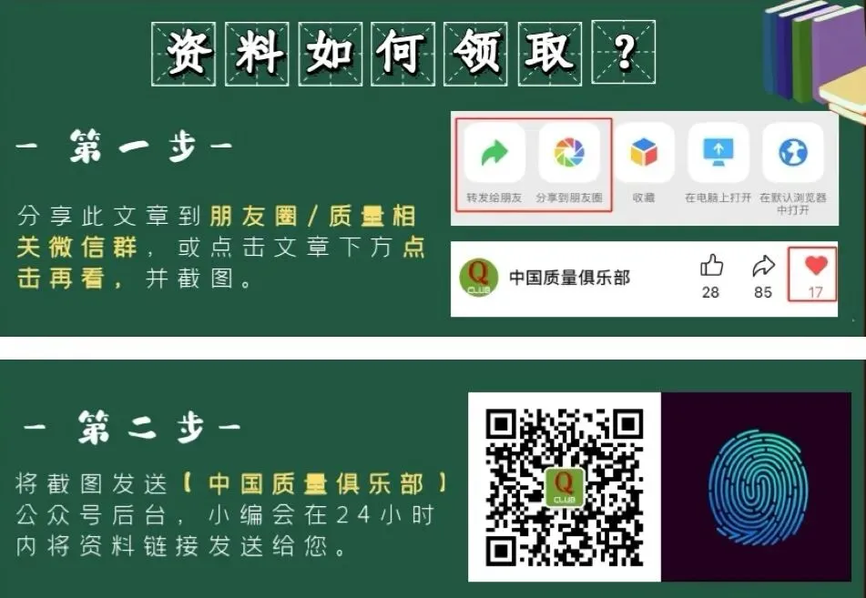 如需获取请点击右下角赞和在看,并转发文章至朋友圈或相关质量群,截图发送至【中国质量俱乐部】后台即可获取!