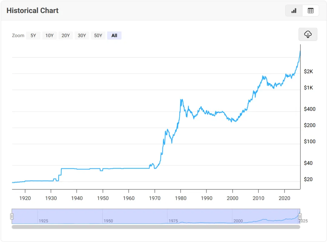 来源:https://www.macrotrends.net/1333/historical-gold-prices-100-year-chart