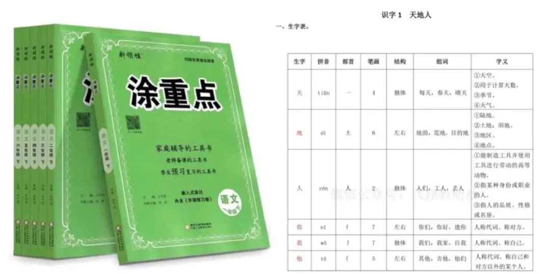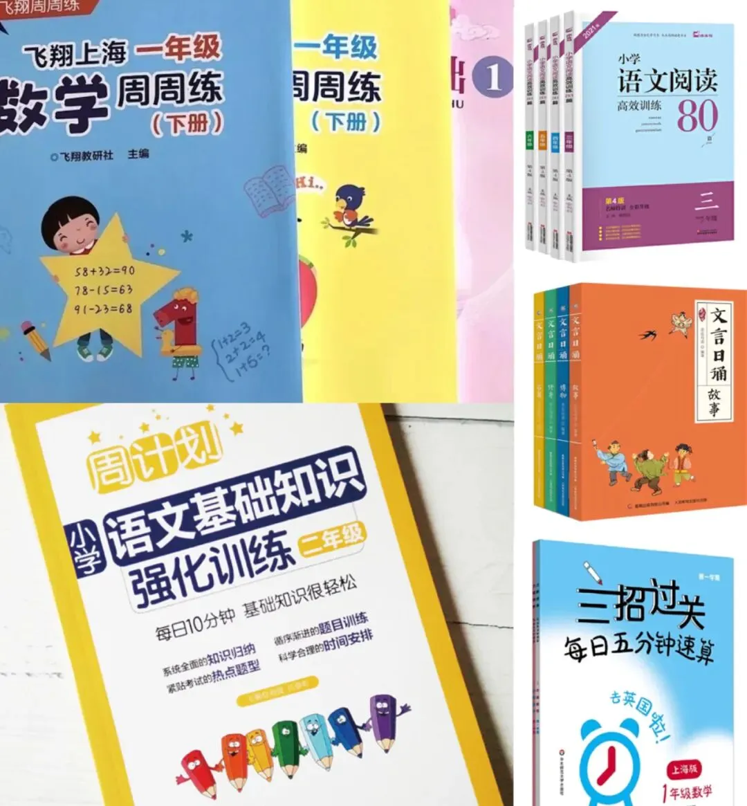 1.语文:①预习:认真做预习的时候《涂重点》,没有时间只能花个5-10分钟结束的《飞翔语文预习》。飞翔这个不知道为啥毫无名气,我从某盘上偶然发现的,只有字词预习,适合读两遍课文,搞一下生字over的节奏,使用频率实测很高。②练字:主要使用学校发的练习,自己也买了华夏万卷的《生字同步》,大同小异,没有特别推荐。