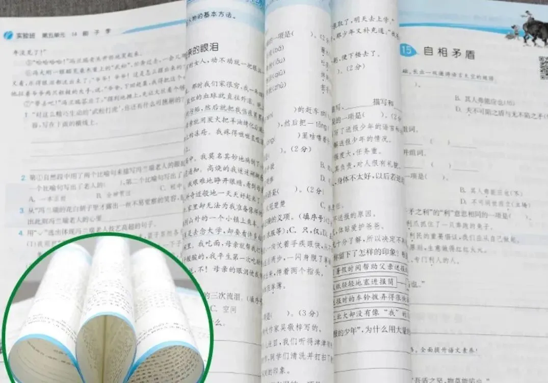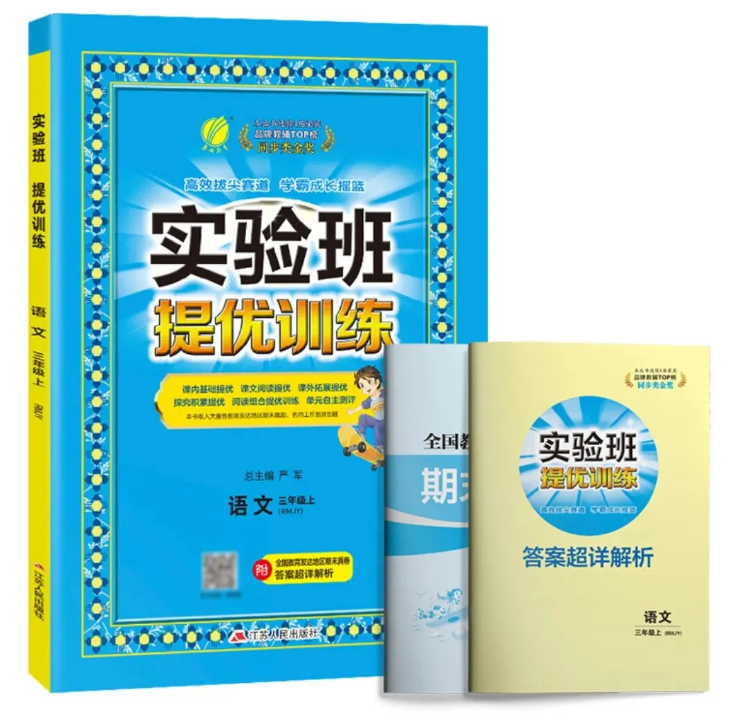 @燕子:确实有一套陪伴了我家孩子好几年,并且帮孩子实现了从中等生向优等生转变的教辅想跟大家分享下。这套教辅有一个很有年代感的名字——《实验班提优训练》。我们与《实验班》的渊源得追溯到三年前,那时候,孩子的成绩在班级里处于比上不足、比下有余的中等水平。孩子的爸爸对此不太在意,但我却觉得,应该抓一抓孩子的成绩,最起码冲到中上等水平,毕竟现在竞争这么激烈。于是,在孩子数学老师的建议下,我给孩子入手了一本数学《实验班》。使用两周后,我又陆续给孩子买了语文和英语科目的《实验班》。这一用,就是3年。这套书除了每课时的学习目标视窗,还分为基础巩固提优、思维拓展提优、开发探究提优等若干版块,孩子自己做题,自己核对,不懂的再查解析或问我们。每次孩子开动脑筋,想出方法后,在“跃过去,你就是尖子生”的开发探究提优版块给自己用红笔打上大大的勾,总是十分开心,觉得自己又攻下了一些难题。书里还循序渐进地安排了名校期末提分真题精练、竞赛思维空间以及单元综合提优测评卷,帮助孩子“得寸进尺”地攻克难关。其中,我最喜欢的就是它附赠的名校期末真题卷,好题云集,自测娃学习水平,再对症下药。