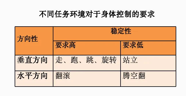 身体控制还与生理负荷、心理负荷有关,比如:在走悬空独木桥时,心理压力大,可能会眩晕失去平衡。