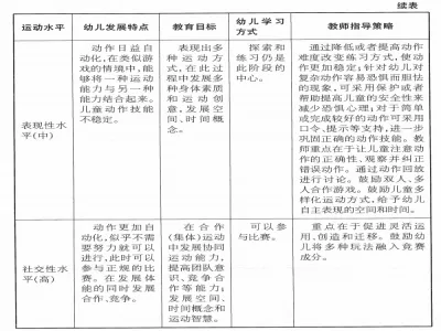 二、根据儿童身体控制的不同运动水平设定相应的教育目标和教师指导策略。