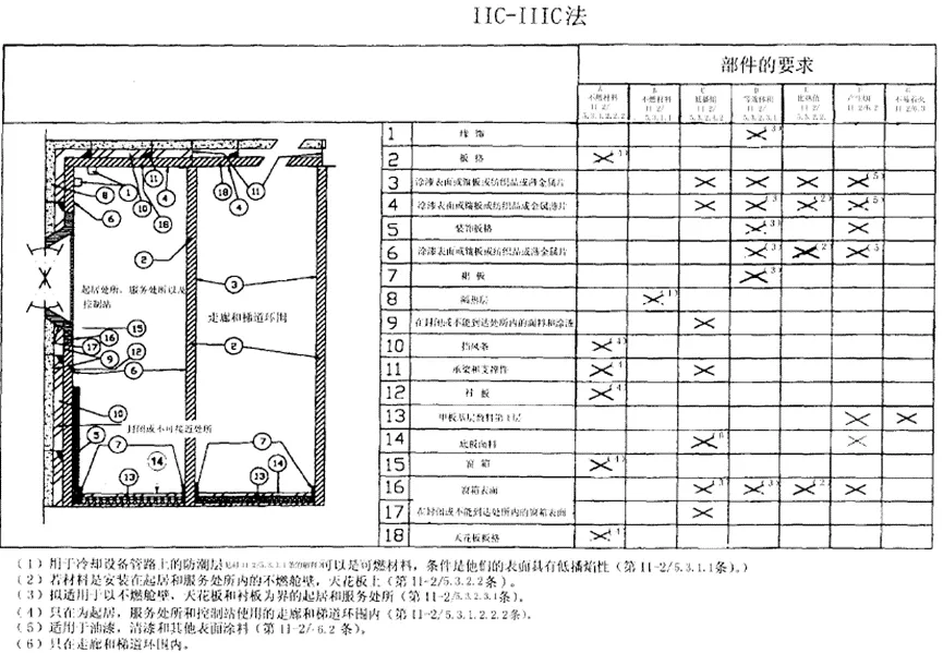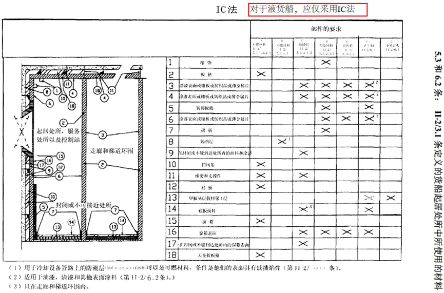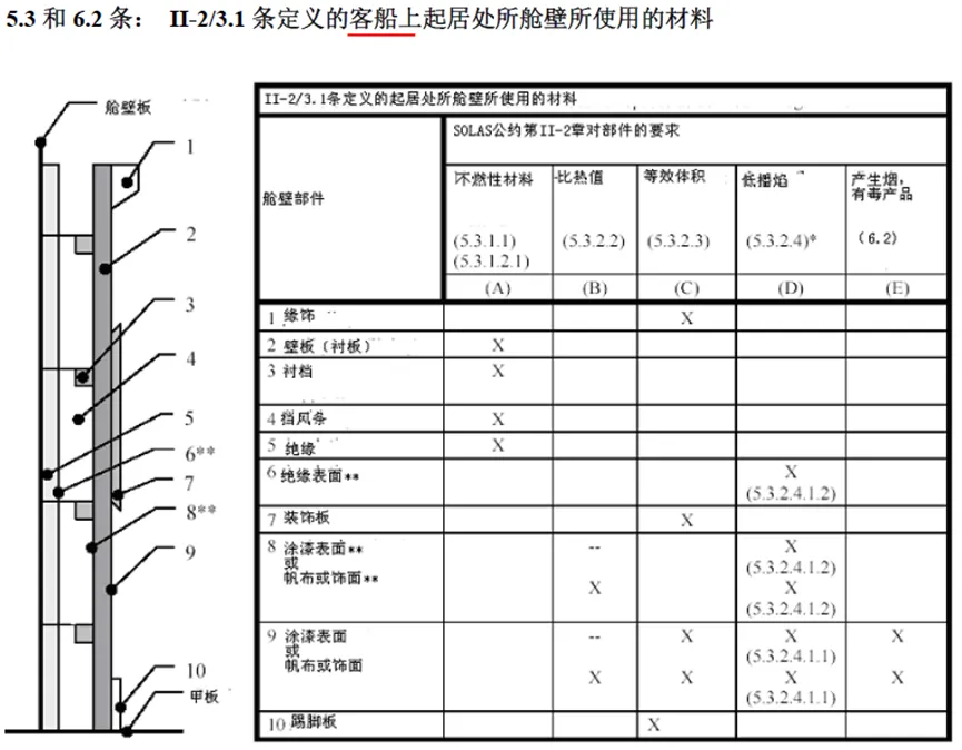 SOLAS公约II-2章第5条3.2款针对可燃材料的使用作出了详细规定,结合MSC/Circ.1120通函的补充要求,明确了客船、货船在起居、服务等关键处所使用可燃材料的准则。一、通则要求:客船与货船的基础规范