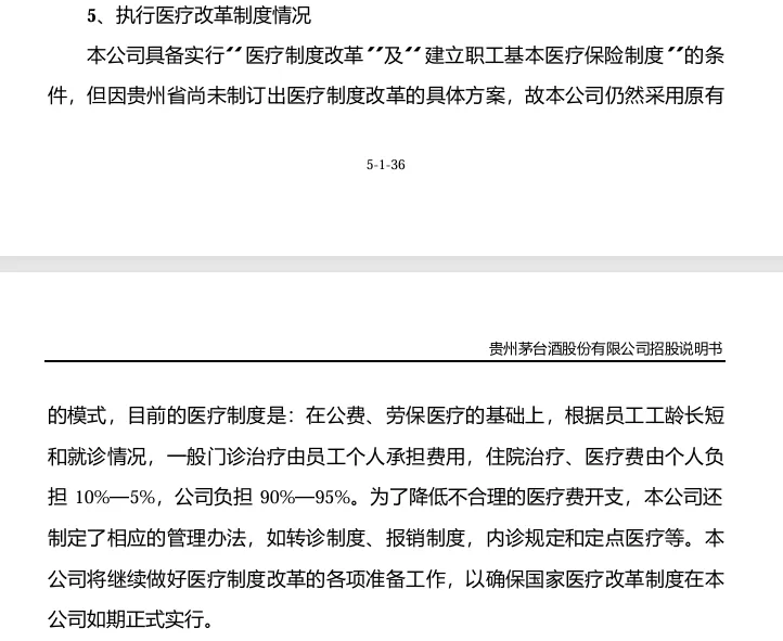 原文:执行医疗改革制度情况(图8)。本公司具备实行“医疗制度改革”及“建立职工基本医疗保险制度”的条件,但因贵州省尚未制定出医疗制度改革的具体方案,故本公司仍然采用原有的模式,目前的医疗制度是:在公费、劳保医疗的基础上,根据员工工龄长短和就诊情况,一般门诊由员工个人承担费用,住院治疗、医疗费由个人负担10~5%,公司负担90~95%。为了降低不合理的医疗费开支,本公司还制定了相应的管理办法,如转诊制度、报销制度、内诊制度和定点医疗等。本公司将继续做好医疗制度改革的各项准备工作,以确保国家医疗改革制度在本公司如期正式实行。