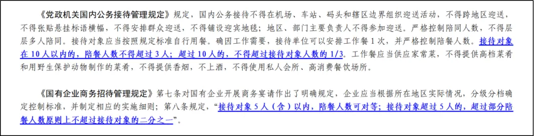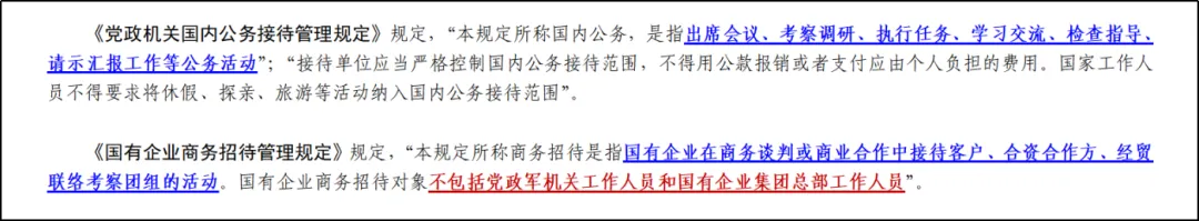 这里的“接待管理规定”,主要包括《党政机关厉行节约反对浪费条例》《党政机关国内公务接待管理规定》,中共中央办公厅、国务院办公厅2014年3月印发的《关于厉行节约反对食品浪费的意见》,国务院国有资产监督管理委员会、财政部2020年3月印发的《国有企业商务招待管理规定》,以及其他涉及公务、商务、外事等接待管理的规定。
