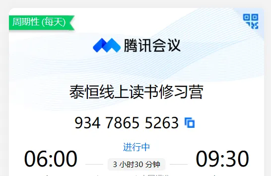 现在一起搬砖的朋友还不少,大家有空的话每天早晨可以通过腾讯会议软件参与。一般7:20开始读书:)