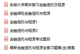 今天分享的资料是「1148-金融信托与租赁」电子版+学习笔记+知识点总结+期末考试重点+复习资料+习题集及答案+名词解释+历年真题试卷及答案+题库及答案+复习重点+思考题及参考答案+公式总结+考试重点基础题+知识总结+高清PDF可打印+免费分享!