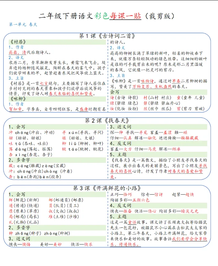 学习资料库 3-2【「26春 语文下册 2年级 生字【课课贴】 高清可打印】
