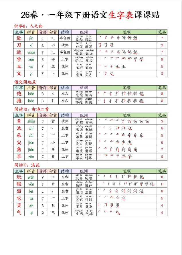 >学习资料库 3-2【「26春 语文下册 2年级 生字【课课贴】 高清可打印】