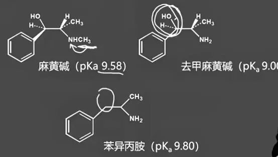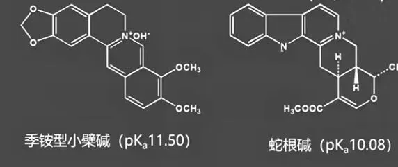 ②实例:小檗碱(季铵) > 麻黄碱(脂肪仲胺) > 毒扁豆碱(芳胺) > 咖啡因(酰胺)。