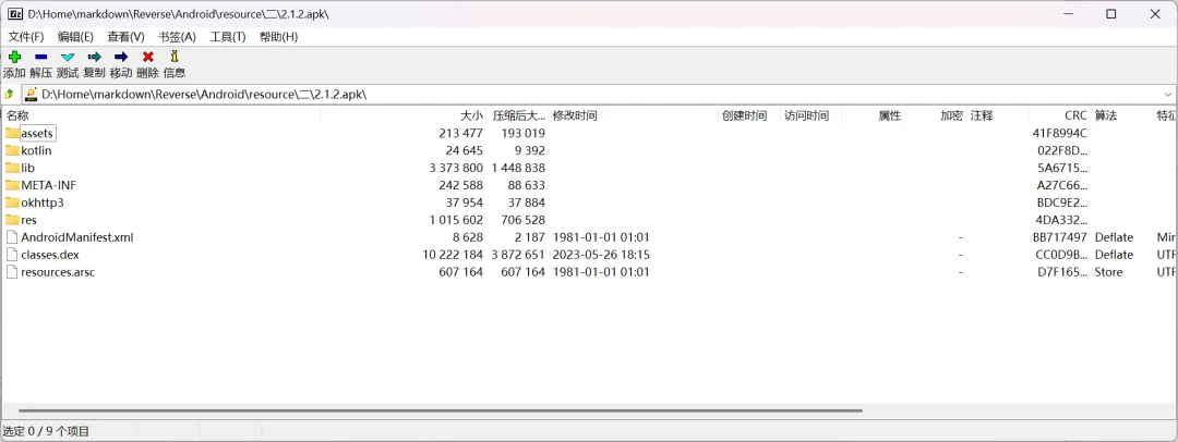 随便使用 7-zip 打开一个 apk 文件