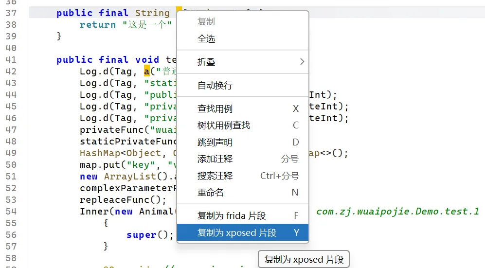 用 jadx 打开要 hook 的包,选择 hook a方法,直接复制代码片段,该导的包就从 xposed 里面导就行。