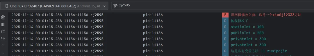 这里 hook 该类所有的构造函数,并在构造函数结束之后(实现 afterHookedMethod 方法)对成员的属性进行修改,成功修改实例的成员值。