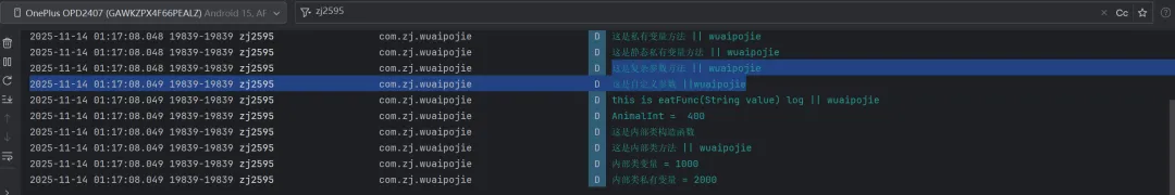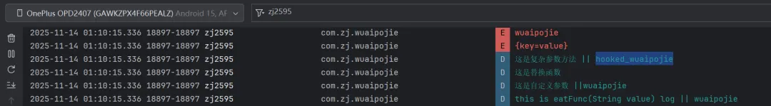 最后启动 LOG,用 Android Studio 抓日志,hook 成功。