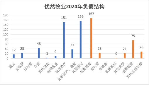 目前的行业背景是原料奶供给过剩,奶价持续下跌,由2023年的4.38元/千克降至2024年4.12元/千克,2025年中报3.87元/千克。原料奶产量由2023年的295万吨增至2024年367万吨,饲料成本2.4元/千克下降至2.10元/千克。原料奶毛利由28.6%提高至32.7%,主要是由于大宗商品原料价格下降;反刍动物养殖系统化解决方案毛利由13.4%提高至16.8%,由优化销售方案,管控成本导致。公司经营所得现金净额58亿,但是资本开支很大,饲养和购置生物资产48亿,物业、厂房、设备17亿,部分被出售生物资产回笼的7亿资金所抵消;借新还旧,偿还借款289亿,新借260亿,产生融资成本31亿。现金减少28.7亿。