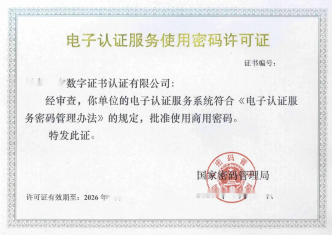 《电子认证服务使用密码许可证》样本(来自网络):
