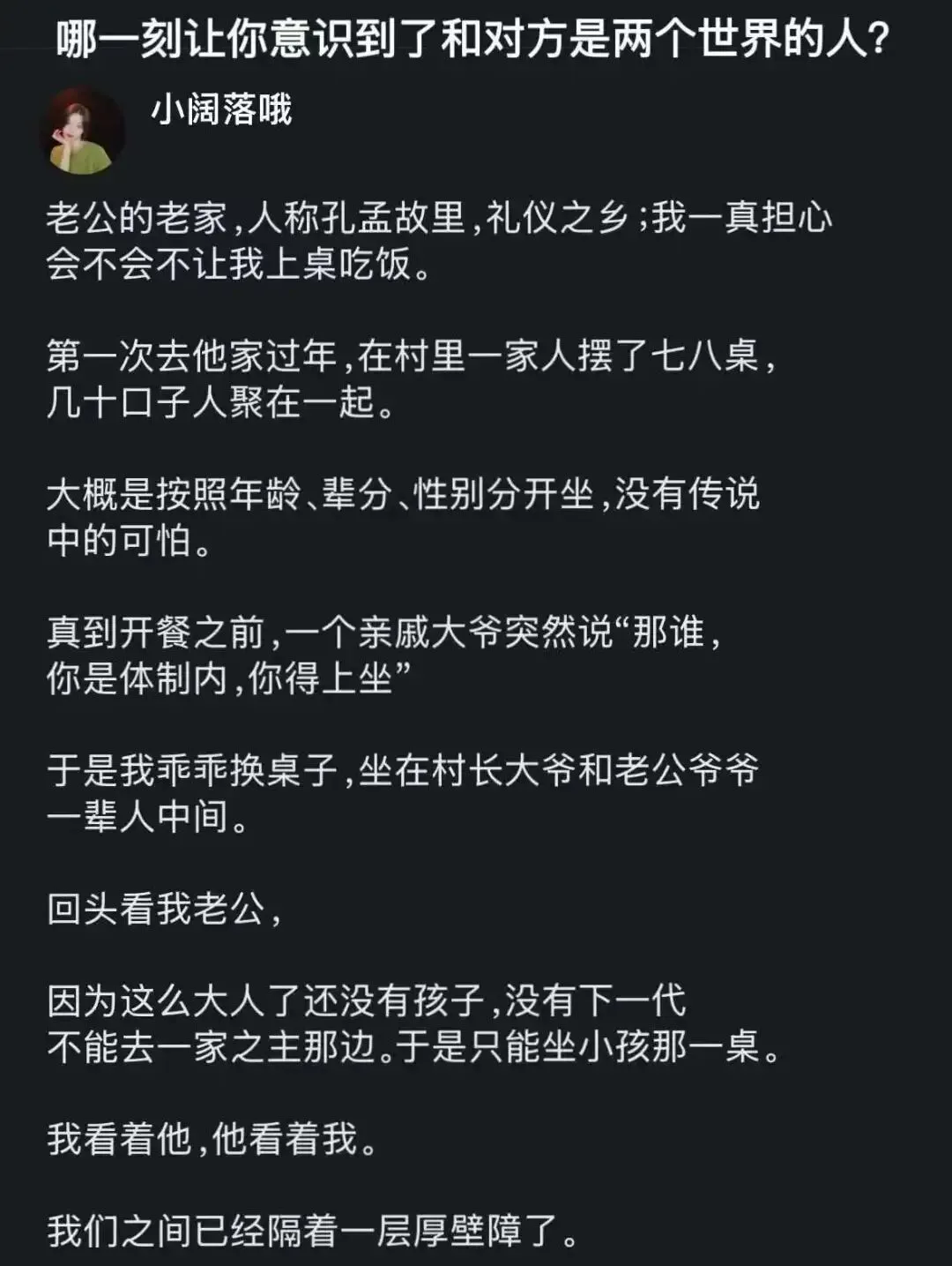 你在城市里谈论的是算力、周期、个人成长;回到老家,亲戚们谈论的是谁工资高、谁媳妇漂亮、谁家生了三胎。