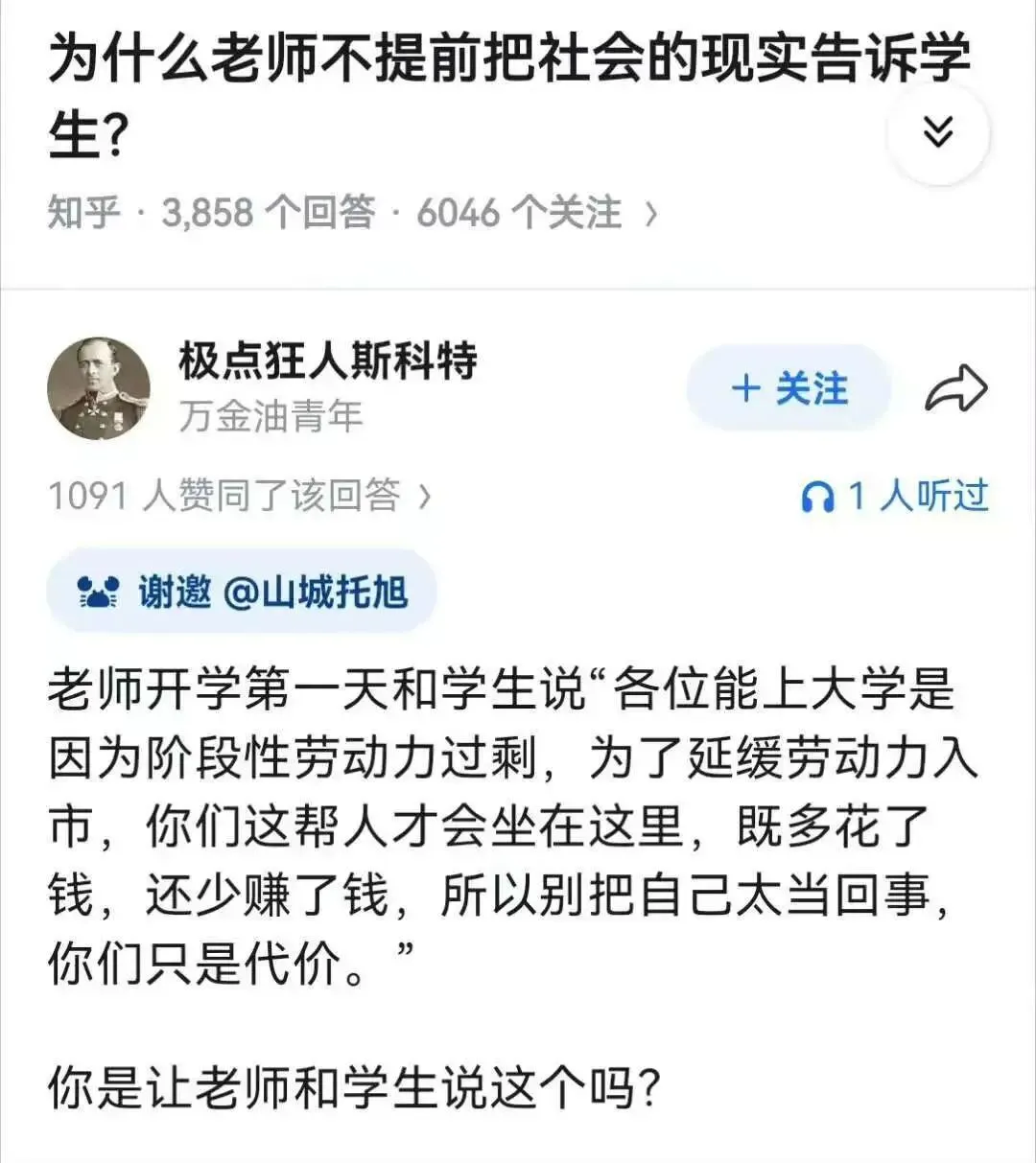 这里不是批评年纪大的人,而是因为他们的价值观和认知有很大概率都是陈旧的,你听多了,不仅没有学到东西,反而增加了束缚。