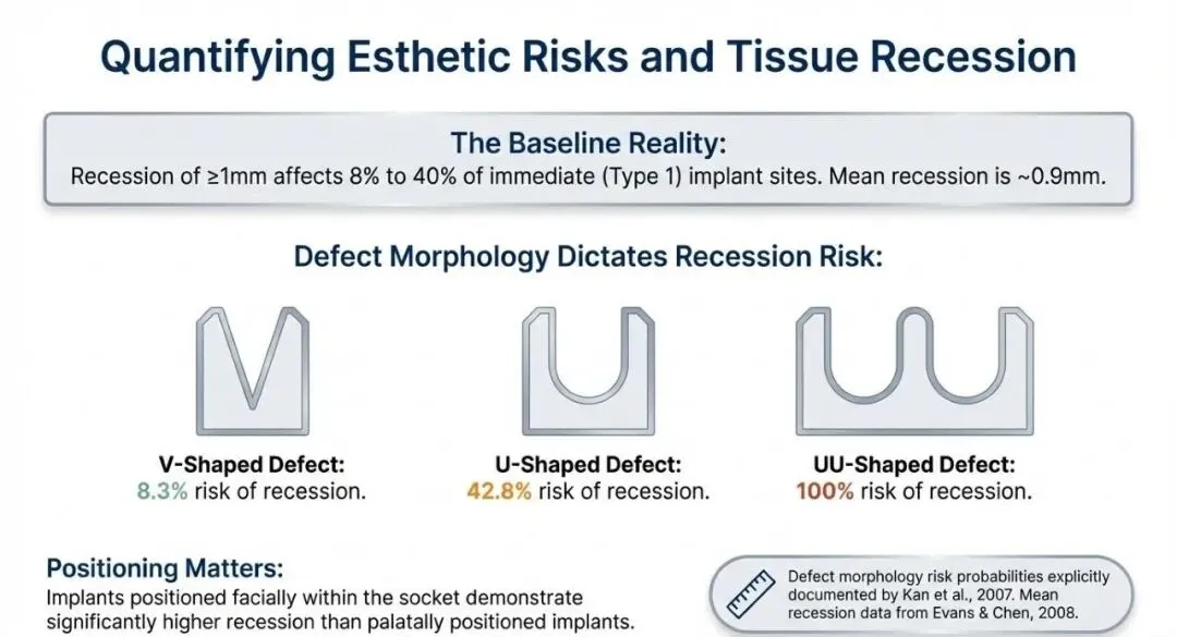 - 植入位置: 偏唇侧植入是导致牙龈退缩的最直接诱因(下颌前牙区失败率最高)。