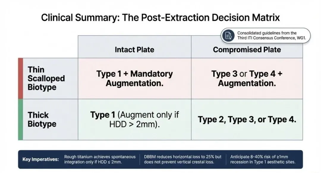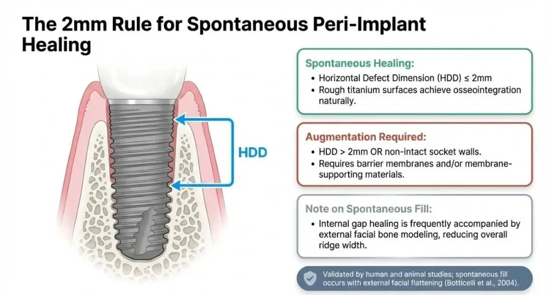 - HDD > 2mm 或牙槽窝骨壁不完整: 必须采用 GBR(骨增量)。