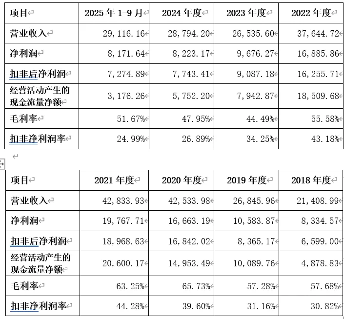 不得不惊叹隆扬电子的毛利率和扣非净利润率是多少制造业企业永远难以企及的,哪怕自2022年起经过多年持续下滑,2025年前三季度的扣非净利润率创下新低,却仍然高达24.99%,即每销售100元的商品,便能为公司带回24.99元的净利润。