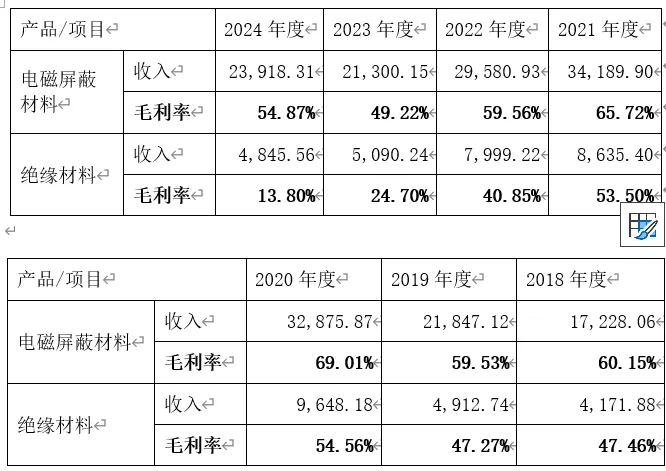 此处需要注意的是绝缘材料2023年至今无论收入还是毛利率均呈现变坏的趋势,但公司未对此作出说明,推测是竞争激烈,产品售价下行所致。