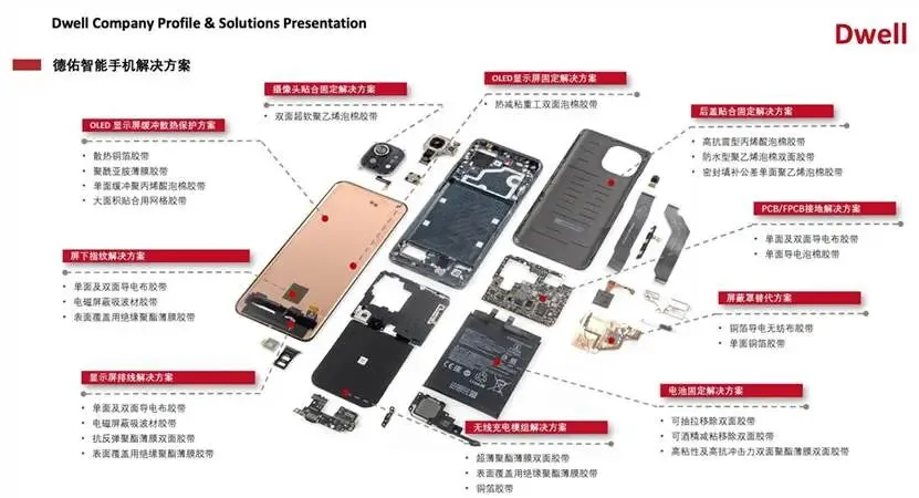 (3)失粘重工用材料拥有永久固定且易拉伸移除、不留残胶的独特优势,应用于手机组装中如电池的粘贴等场景,提升了装配流程中的灵活性与可重工性,降低了生产中的时间成本和物料浪费。