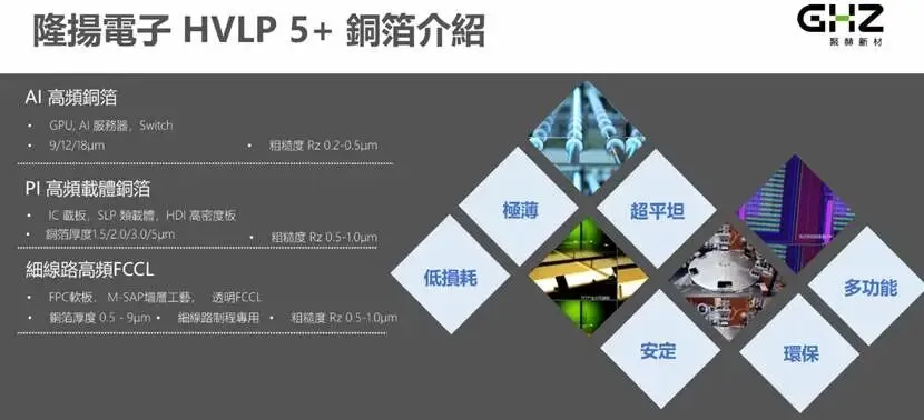 如笔记前述,隆扬电子营收规模、利润水平、产品矩阵、过往成长性均不如世华科技、恒铭达,但截至2026年2月末,隆扬电子却拥有最高的市值。究其原因,除了两桩并购项目,更重要的是公司于2024年10月在中国台湾TPCA电路板展会正式发布了AI/HPC次世代HVLP5+铜箔产品。