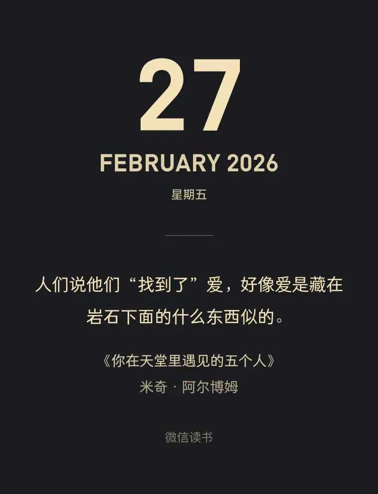又让我想起来二月份阅读你在天堂遇到的第5个人里。人们经常说找到了爱,好像爱是什么藏在石头底下要去发现寻找的东西一样。