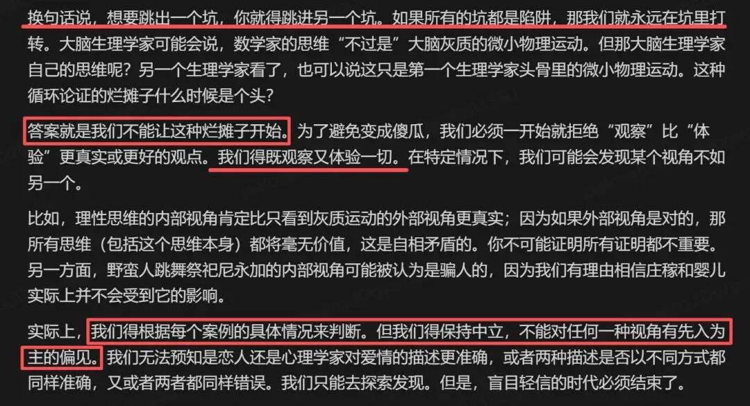 这一部分划线和摘录,我觉得是对今天思考问题的重要理论之支撑。其中有一些话很长很拗口,理解有点费劲,要多读几遍。