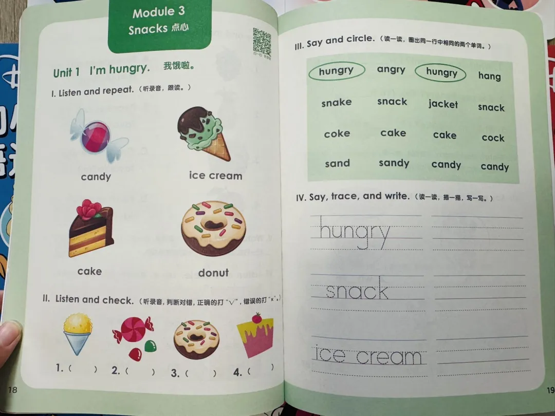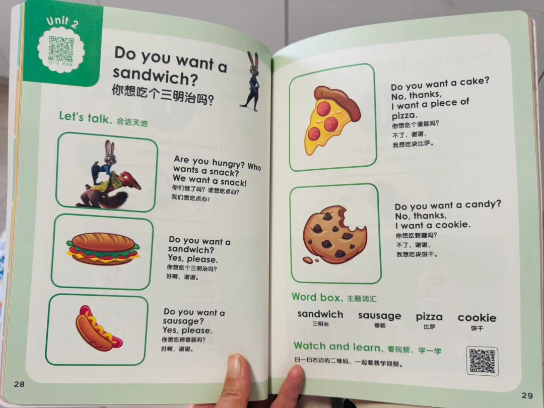 🎵 在说唱方面,套书共18首主题儿歌,单元词汇和句型穿插其中,现学现用。这样不怕孩子不爱开口说英语了。
