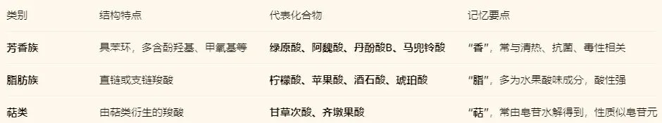 (3)萜类有机酸:由萜类苷元衍生而来(如三萜酸),性质与皂苷类似。