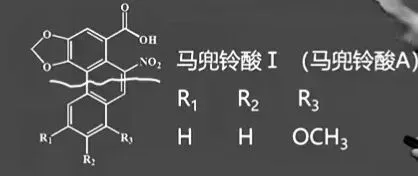 (1)核心毒性成分:马兜铃酸I (A)(硝基菲羧酸)。