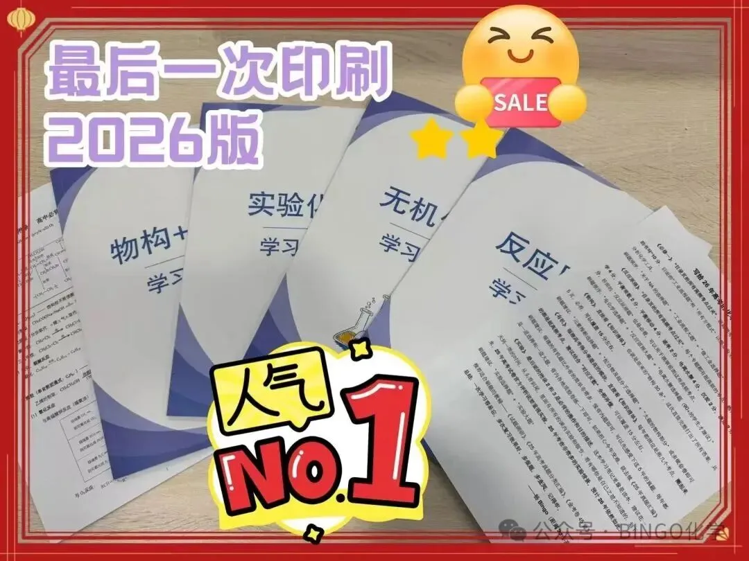 关于《推荐教辅或练习》可私信我,最后100天最好的练习是省内真题,所以你们记得关注“BINGO化学”自媒体账号,有手写解析或视频讲解的试卷都值得一做,这些都是任何教辅来不及更新的,仅此一家,不要错过了。