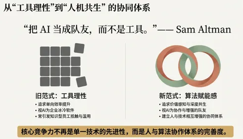 未来企业的竞争力,不在于拥有多先进的算法,而在于能否建立起人与技术深度共生、相互增强的协同体系。管理者需要思考的是:如何搭建组织架构,让团队能快速吸收这些新工具?