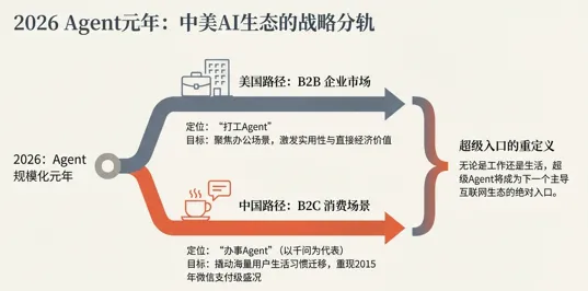 2026年被视为“Agent规模化应用元年”,但中美两国的切入点很不一样: