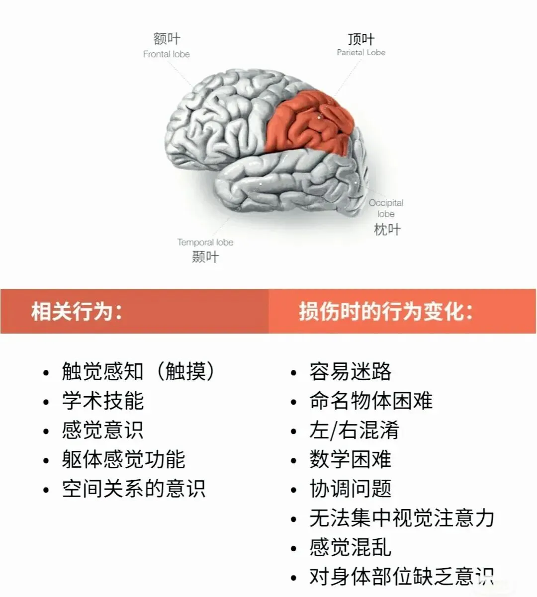 7. 皮质(顶叶)损伤: 感觉障碍范围不符合单一周围神经支配区,常跨越多个神经分布区。 可能出现游走性疼痛。患者常难以精确定位疼痛点,主诉模糊(“就是感觉疼,但说不清具体在哪”)。