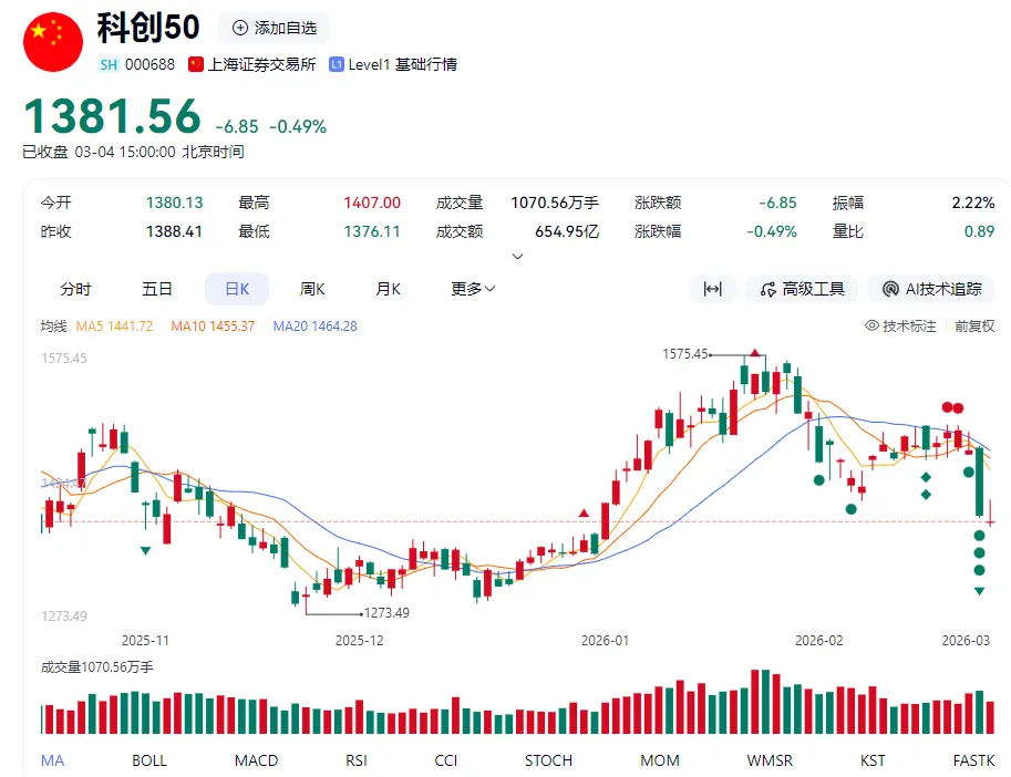 我在3月2日的大跌时看到了科创50的均线趋势朝下走成了危墙,当天就减仓至2成,先控制风险,机会有的是,不在危墙之下冒风险。。。