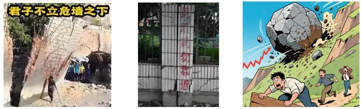 对于这种危险的墙根,你我一般不会走过去冒险,心里都明白这事划不来,有受伤or丧命风险,所以会绕道而行,避开这种危险的墙根。