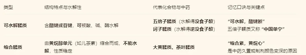 1.分类明晰:鞣质分可水解与缩合,多糖分水溶与水不溶,蛋白质注意酶的特殊性。