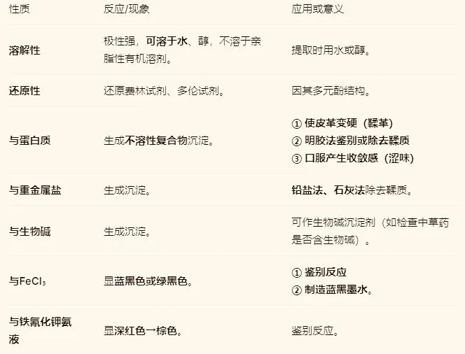 4.联系应用:理解这些性质在中药制剂工艺(如除鞣、除蛋白)和药理作用中的实际意义。