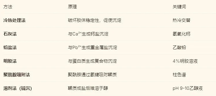 3. 除去鞣质的方法(制剂工艺重点)