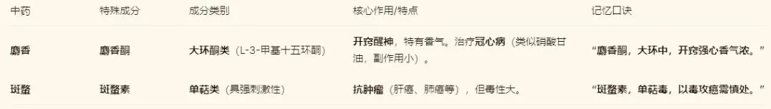 (3)麝香、斑蝥作为特殊成分单独记忆。