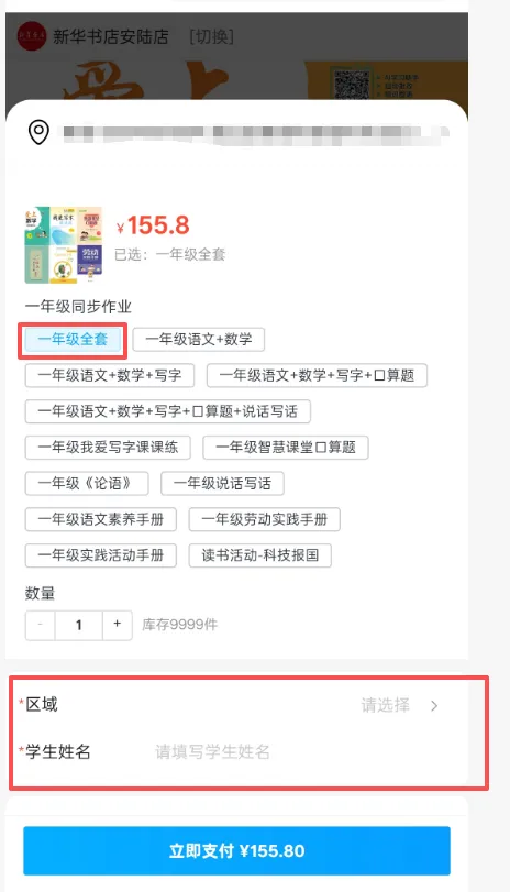 2.选择在读年级商品,点击商品图界面进入购买链接。