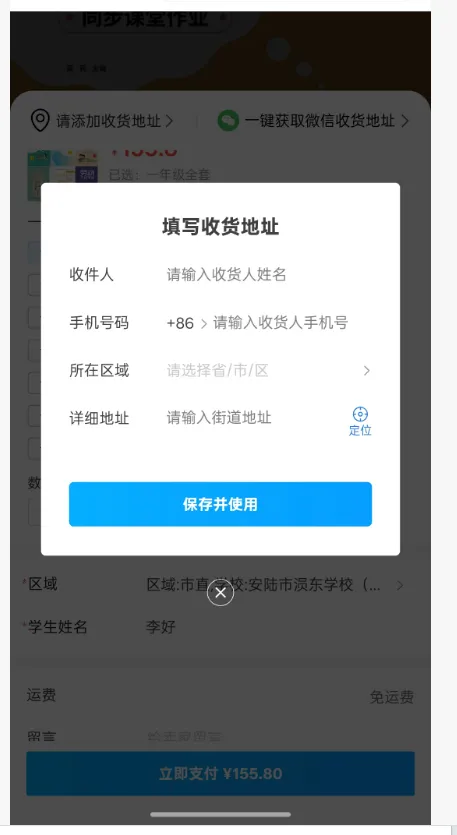 4.选择需要的商品类型(满46元包邮,不满足包邮条件则快递费为5元),并填写详细学生信息。